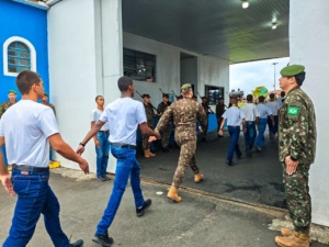No início da cerimônia, o soldado mais moderno dentre os recrutas, Francisco Neres Cândido, teve a honra de realizar a abertura dos portões do quartel, juntamente com o Comandante da unidade, TC Vicente, simbolizando a chegada desses jovens ao serviço militar obrigatório, no Exército Brasileiro.