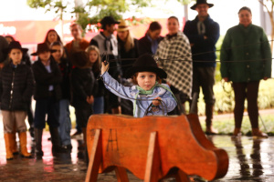 A primeira Laçada de Vaca Parada oficial da Festa Nacional do Pinhão foi promovida pelo Movimento Tradicionalista Gaúcho (MTG/SC) e contou com 150 participantes, incluindo crianças com deficiências físicas e intelectuais