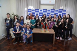 Os atletas lageanos que conquistaram medalhas nos Jogos Escolares de Santa Catarina (Jesc), na categoria 12 a 14 anos, e nos Jogos Abertos Paradesportivos Escolares de Santa Catarina (Parajesc), realizados em Blumenau, foram recepcionados na tarde desta terça-feira (15 de julho), na Prefeitura de Lages, em cerimônia de reconhecimento às suas conquistas. O evento contou com a presença da prefeita Carmen Zanotto, do superintendente da Fundação Municipal de Esportes (FME), Tyrone Machado, pais, técnicos e dos medalhistas.