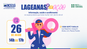 O público feminino tem suporte especial da Prefeitura de Lages. Olho no olho, escuta, empatia, altruísmo, compreensão, cuidados com a saúde e carinho. Está em fase de ajustes finais de organização uma nova edição planejada do evento Lageanas em Ação – Informação, saúde e acolhimento: Os superpoderes que toda mulher tem dentro de si!, promovido pela Secretaria Municipal de Políticas para a Mulher e para a Pessoa Idosa. A 5ª edição está programada para o bairro Passo Fundo, no período vespertino do último sábado do mês de julho, dia 26, de 14h até as 17h, especificamente no Centro de Educação Infantil Municipal (Ceim) Sepé Tiaraju [situado na rua Dejaime Joaquim Alves]. O evento acontece em parceria com a Secretaria Municipal da Saúde, Pacto pela Aceleração Territorial [Fórum das Entidades Empresariais de Lages] e Banco da Família.