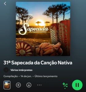 Prepare o coração e os ouvidos: a 31ª Sapecada da Canção Nativa vai invadir as plataformas de música! Nesta sexta-feira (15 de agosto), feriado municipal em homenagem à Padroeira de Lages, Nossa Senhora dos Prazeres, o álbum oficial com as finalistas de 2025 estará disponível para todo o Brasil e o mundo.