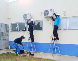 O serviço está sendo executado por empresas terceirizadas contratadas pela Prefeitura, em conjunto com as equipes do Setor de Manutenção Geral da Secretaria da Saúde. As instalações ocorrem simultaneamente em diversas unidades, respeitando a programação técnica e a demanda de cada local.