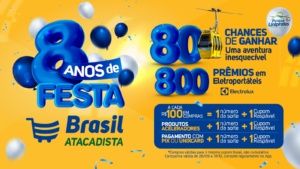 “A melhor forma de comemorarmos é premiar nossos clientes, que estão com a gente nesses oito anos e sabem que no Brasil Atacadista encontram os melhores produtos, promoções diárias, preços baixos e ótimo atendimento”, destacou o diretor de Marketing, Julio Lohn. “É graças a eles que continuamos a crescer e oferecer cada vez mais qualidade”, concluiu.