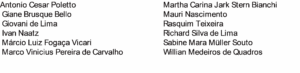 Os 12 nomes que concorrem a lista sêxtupla, por ordem alfabética são:
