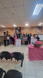 🌸 24/10 – Encontro com funcionários e colaboradores do Hospital Geral e Maternidade Tereza Ramos, em Lages, reforçando a importância da detecção precoce e do apoio entre colegas de trabalho.