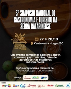 A Serra Catarinense se prepara para receber mais uma edição de um dos encontros mais relevantes do setor gastronômico e turístico do Sul do país. O 3º Simpósio Nacional de Gastronomia e Turismo da Serra Catarinense acontece nos dias 27 e 28 de outubro de 2025, no Centroserra Convention Center, em Lages, reunindo especialistas, empreendedores, produtores e entusiastas da culinária regional em uma programação repleta de experiências, inovação e sabor.