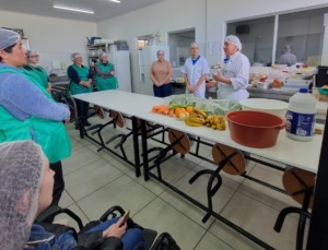 Em comemoração ao Dia Mundial da Alimentação, celebrado em 16 de outubro, a Secretaria de Assistência Social através do Banco de Alimentos de Lages promoveu na segunda-feira (20 de outubro) a ação “De mãos dadas por uma alimentação melhor e um futuro melhor”, em parceria com o Sesc Mesa Brasil Lages, Somais. Participaram da oficina cozinheiras dos equipamentos da Secretaria de Assistência Social e de entidades como a Associação Serrana de Deficientes Físicos (ASDF) e o Lar Menino Deus.