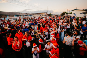 Uma multidão prestigiou o evento para conferir as apresentações culturais de crianças e estudantes das Escolas Municipais de Educação Básica (Emebs) Santa Helena e Hermínio Pinheiro Júnior. A chegada do Papai Noel encerrou a festa, encantando os pequeninos e suas mamães e papais
