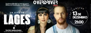 O Overdriver Duo, formado por Evandro Tiburski e Fabi Terada, chega a Lages/SC com sua nova turnê mundial para celebrar 10 anos de carreira. O show será realizado no dia 13 de dezembro de 2025, no Teatro Marajoara, com início às 21h.