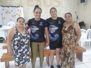 No final da tarde de terça-feira (23/12), nem mesmo a forte chuva e os ventos impediram os atletas da ALN de cumprirem sua missão como verdadeiros campeões também fora das piscinas. Acompanhados pelos pais e pela diretoria da entidade, eles participaram de uma ação solidária que emocionou a comunidade local.