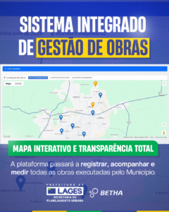 Com a implantação do sistema Betha Obras/govView, Lages se posiciona na vanguarda da gestão pública municipal, com aplicação responsável dos recursos financeiros públicos, cumprimento de prazos e transparência total, e proporciona, aos cidadãos, o acompanhamento da evolução da cidade de perto.