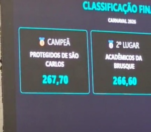 Protegidos de São Carlos Campeã do Carnaval 2026 de Lages CULTURA, SEM CATEGORIA | 0 | A Escola de Samba Protegidos de São Carlos do bairro Habitação em Lages levou o título de Campeã do Carnaval 2026 em Lages com 267,70 pontos, ficando em segundo lugar a Acadêmicos da Brusque com 266,60. Post Views: 3.007