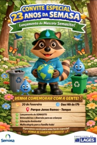O ponto alto da programação será a apresentação oficial da nova mascote da autarquia, o Semasito, um simpático guaxinim especialista em manter tudo limpo e organizado e que passa a representar as ações de educação ambiental desenvolvidas pela Semasa, especialmente dentro do programa Recicla + Lages. A mascote foi escolhida em votação pelos estudantes dos sistemas Municipal e Estadual de educação e a rede privada de ensino, em votação que ocorreu no final do ano passado.
