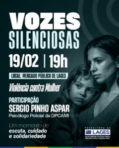 A Prefeitura de Lages promove nesta quinta-feira (19 de fevereiro), a partir das 19h, mais uma edição do projeto “Vozes Silenciosas”, no Mercado Público Municipal Osvaldo Uncini. A ação integra a política permanente de enfrentamento à violência contra a mulher e intensifica o compromisso do poder público com a prevenção, o acolhimento e a promoção de direitos.