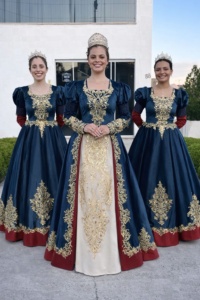 Os trajes oficiais da realeza foram concebidos como uma homenagem a essa herança cultural. Inspirados nos trajes cerimoniais europeus, conhecidos pela elegância, riqueza de detalhes e imponência das silhuetas, os vestidos trazem uma interpretação contemporânea dessa estética tradicional.
