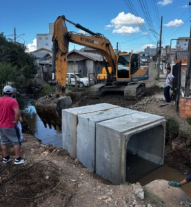 O trabalho envolveu a instalação de galerias pluviais, conhecidas como aduelas, que são estruturas pré-moldadas de concreto armado projetadas para suportar grandes cargas e garantir eficiência no fluxo da água. A obra foi realizada com recursos próprios do município e mão de obra das equipes da própria secretaria Obras e Infraestrutura.