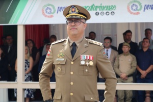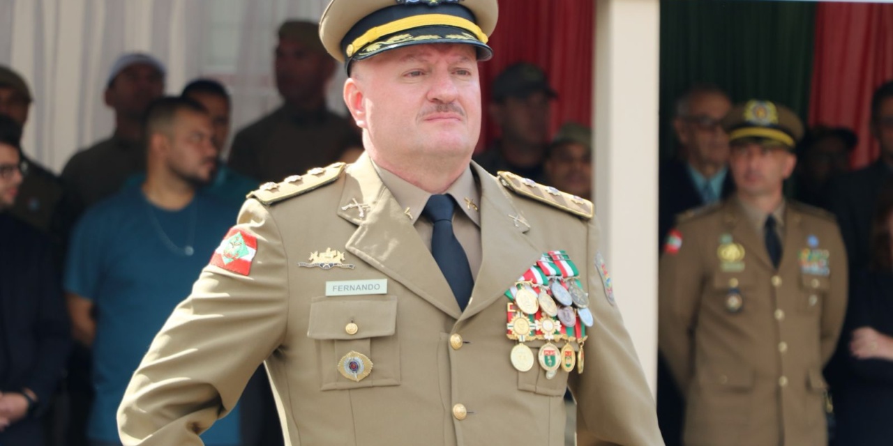 O novo comandante, coronel Adair Alexandre Pimentel, natural de Vacaria (RS), assumiu a função após atuar como Controlador-Geral da PMSC, trazendo experiência em funções estratégicas e formação em Direito com especializações em segurança pública.