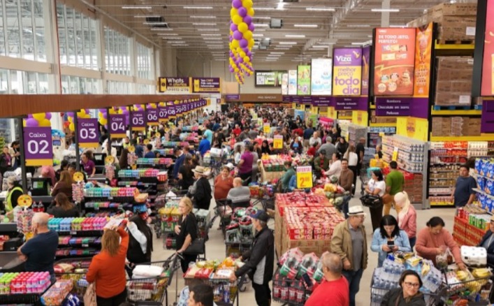 A nova loja chama atenção pela dimensão: são mais de 9.500 metros quadrados de área construída, com 250 vagas de estacionamento, além de 22 caixas de atendimento que garantem agilidade no fluxo de clientes. O mix conta com mais de 20 mil itens disponíveis, entre produtos regionais, nacionais e importados diretamente pelo grupo.