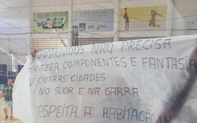 Um cartaz chamou a atenção ao final da apuração que oficializou a Protegidos Campeã do Carnaval 2026n chamando atenção para produção local, de fantasias, carros, utilizando de mão-de-obra local.