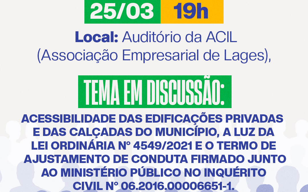 Evento aberto à comunidade irá apresentar resultados do Termo firmado com Ministério Público (MP) e discutir melhorias na legislação e na infraestrutura urbana A Prefeitura de Lages, por intermédio da Secretaria do Planejamento Urbano, promoverá no próximo dia 25 de...