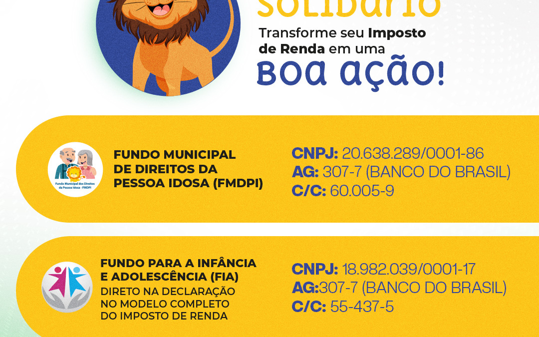 Leão Solidário 2026: Destine até 6% do Imposto de Renda devido para o Fundo da Infância e Adolescência ou ao Fundo Municipal dos Direitos da Pessoa Idosa